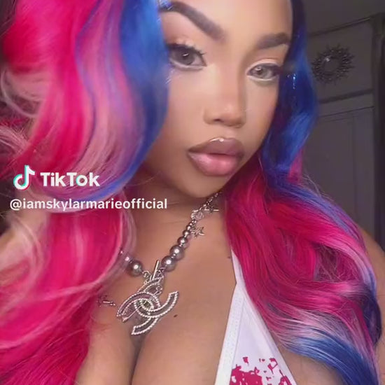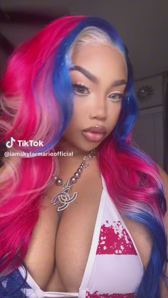 20 inch 613 13*4 Transparent 180% Density Custom dyed inspired 4th of July ❤️🤍💙🩷